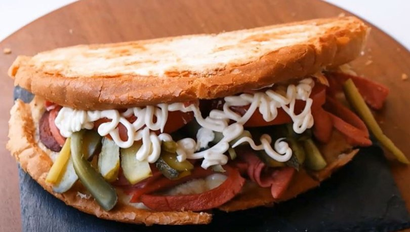 Tortilla ekmeğinde, kaşar peyniri, julyen dana bonfile, köy biberi, kapya biberi, mantar.